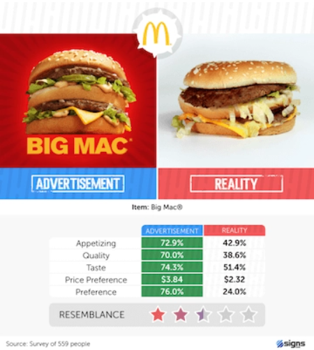 We know, the real deal doesn’t exactly look so enticing. But ask yourself this – would you be convinced to stuff down the actual burger if it remained the way it was before video productions? You know the truth yourself.